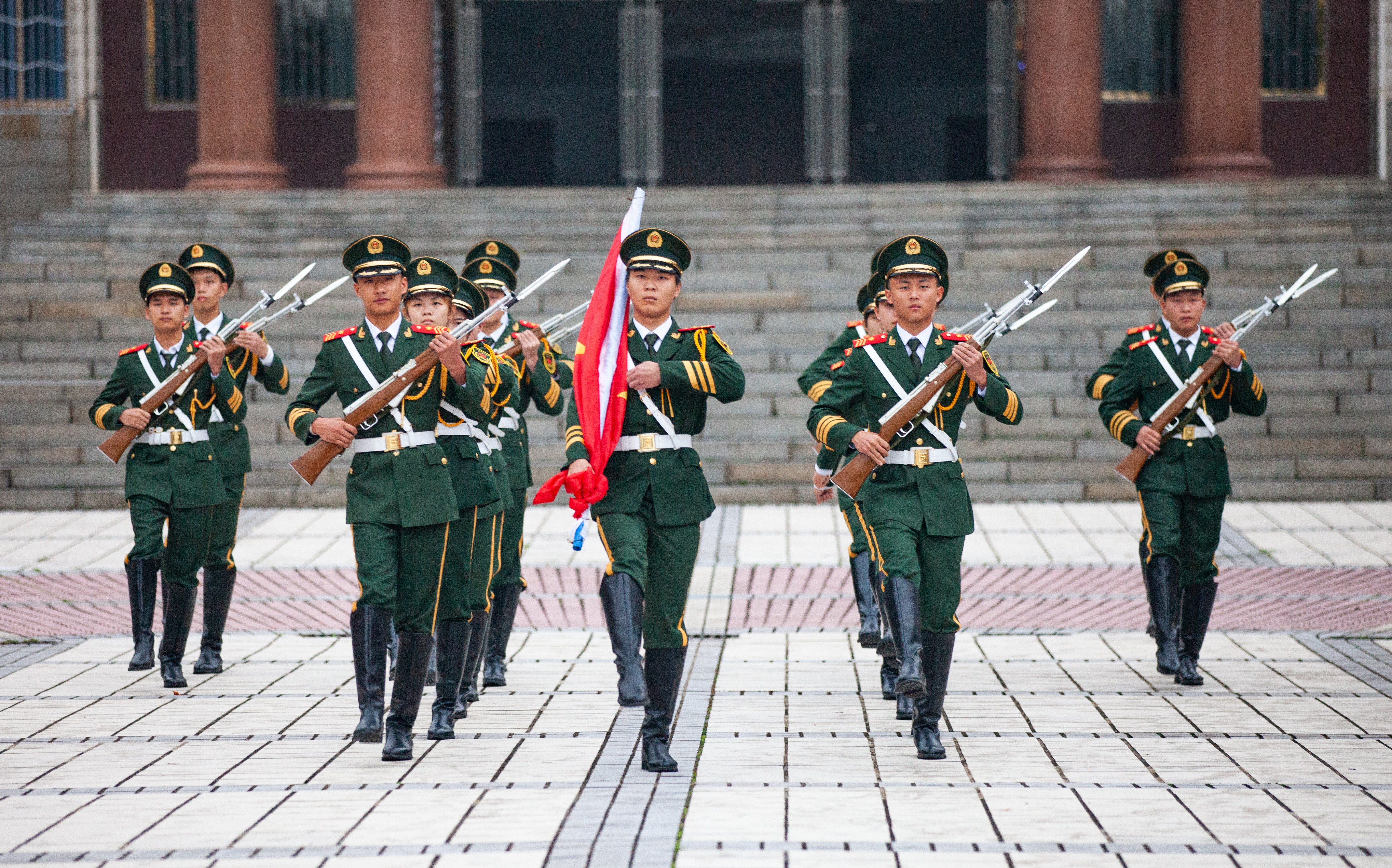 早上七时许,伴随着庄严的国歌声,五星红旗迎风冉冉上升,在细雨中鲜艳夺目,全体师生肃立面向国旗行注目礼,衷心祝福祖国繁荣昌盛,为伟大祖国喝彩。