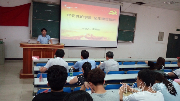 5月31日下午,党委委员、副校长李常健为经济与管理学院全体师生党员和党员发展对象上专题党课。
