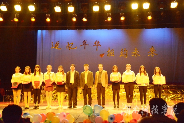 本网讯(通讯员 冯秋月)5月9日晚,外国语学院“追忆年华,相约未来”——2016届毕业生欢送晚会在尚美楼音乐厅举行。校党委书记陈弘,副校长程智开及相关部门领导参加晚会。