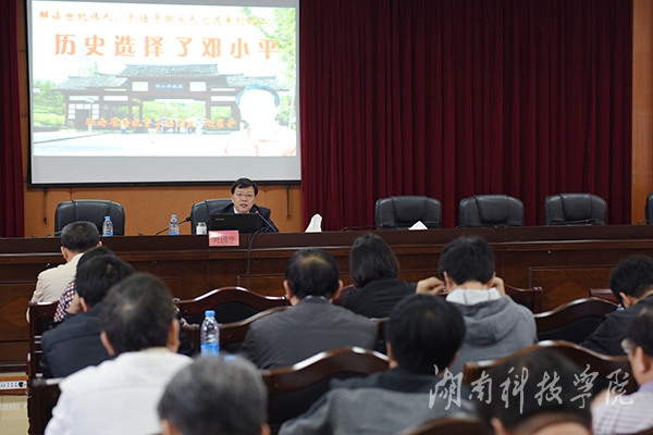 本网讯(记者 贺紫蝶 摄影 何帅文)4月22日上午,湖南省高校干部培训中心书记、省委教育工委党校副校长刘国华以“解读世纪伟人,参悟干部成长之道系列之二——历史选择了邓小平”为主题给处干班学员作专题讲座。