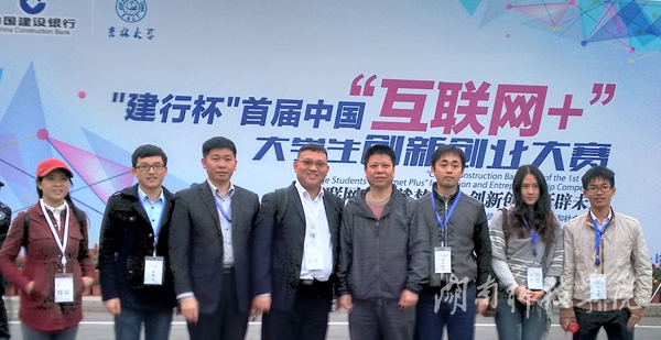 我校师生在“首届中国'互联网+'大学生创新创业大赛”赛场合影