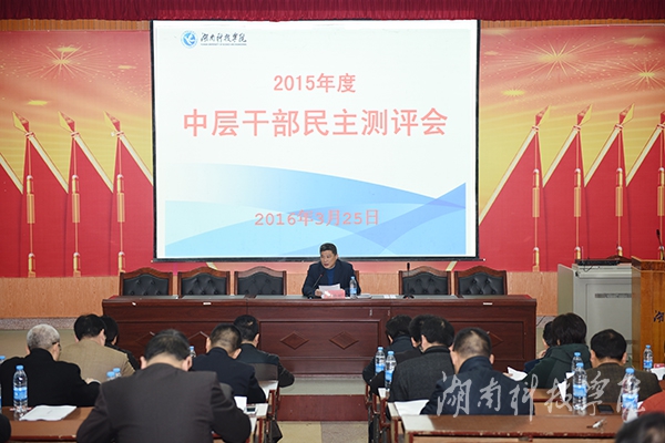 25日下午,由唐艳明、宋宏福、郑山明、李常健、吴小林五位校领导各自率领考核小组到各教学学院及离退休工作处组织召开民主测评会。会后,校领导及相关部门负责人在行政办公楼六楼会议室对教学学院及离退休工作处的61名中层干部进行集中测评。