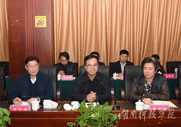 座谈会上,秦志军代表县方介绍了蓝山县情和经济社会发展情况,曾宝成代表校方介绍了学校基本情况和转型发展情况。双方参会人员分为五个小组,分别就旅游文化、教育、工业、商贸、农业五个领域近20余项合作项目的可行性进行了对口研讨。蓝山县相关部门负责人还针对各自经济社会发展实践中遇到的困难和问题提出了合作意向。经过双方交流、研讨,达成初步合作意向项目50多个。专家组回校后还将进一步汇总、筛选、论证,然后逐个落实。