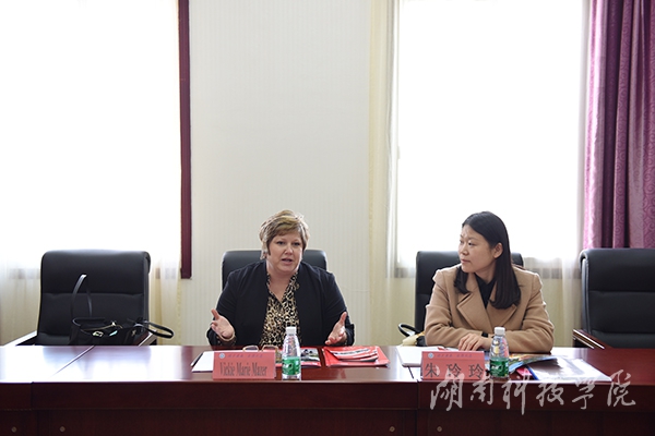 副校长宋宏福对Vickie的到来表示热烈欢迎。他详细介绍了我校的历史概况和发展成就,他表示自从2013年与对方建立合作关系以后,就非常希望能进一步深入合作,在学生交换、教师赴美培训方面同FSU展开更深层次的交流。