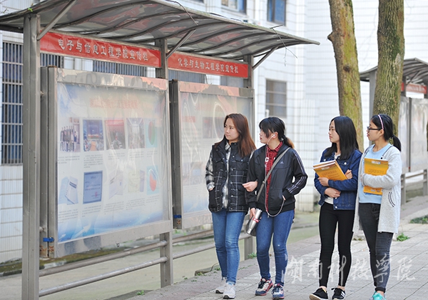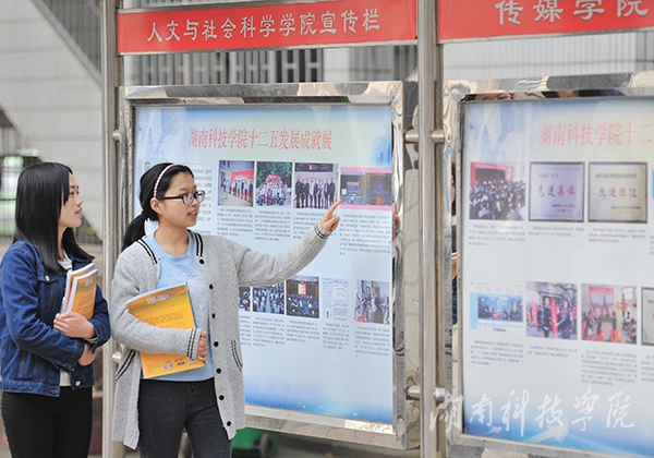 本网讯(摄影 何帅文) 近日,我校“十二五”办学成就展在宣传栏展出,吸引广大师生纷纷驻足观看。