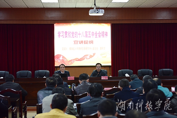 本网讯(记者 裴滢) 12月10日上午,党委学习中心组在行政办公楼八楼一会议室举行专题辅导报告会,集中学习党的十八届五中全会精神,邀请省委宣讲团成员、省政府发展研究中心副主任唐宇文作宣讲。校党委书记陈弘主持。校领导曾宝成、唐艳明、宋宏福、彭立威、郑山明、李常健、吴小林、程智开、袁先友、陈仲庚等校领导,全校副处级以上干部,党群部门副科级以上干部和马克思主义学院全体教师聆听了报告。