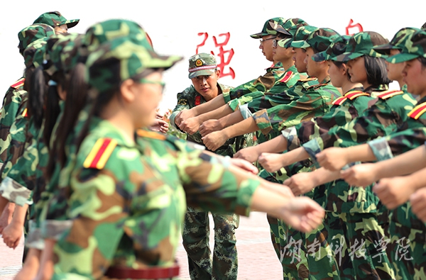 近日,我校2015级新生军训拉开序幕,近4000名新生将开始为期半个月的军训,迎接大学的第一个挑战。他们身着整齐的军装,从站军姿、立正、稍息、跨立等基本项目开始学起,从握拳到摆臂,从敬礼到脱帽戴帽,每一个动作都力求标准规范,认真走好大学第一步。(摄影 何帅文)