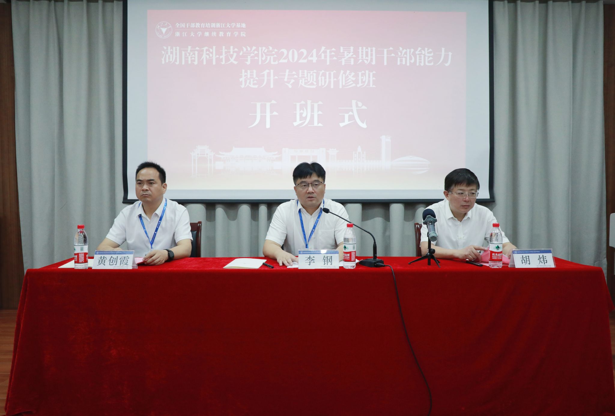 本网讯(记者 谢志豪)7月7日,学校干部暑期研修班在浙江大学开班,党委书记李钢、校长黄创霞等全体校领导、党委委员,全国干部教育培训浙江大学基地常务副主任、浙江大学继续教育学院党委书记胡炜以及全体学员参加开班仪式。