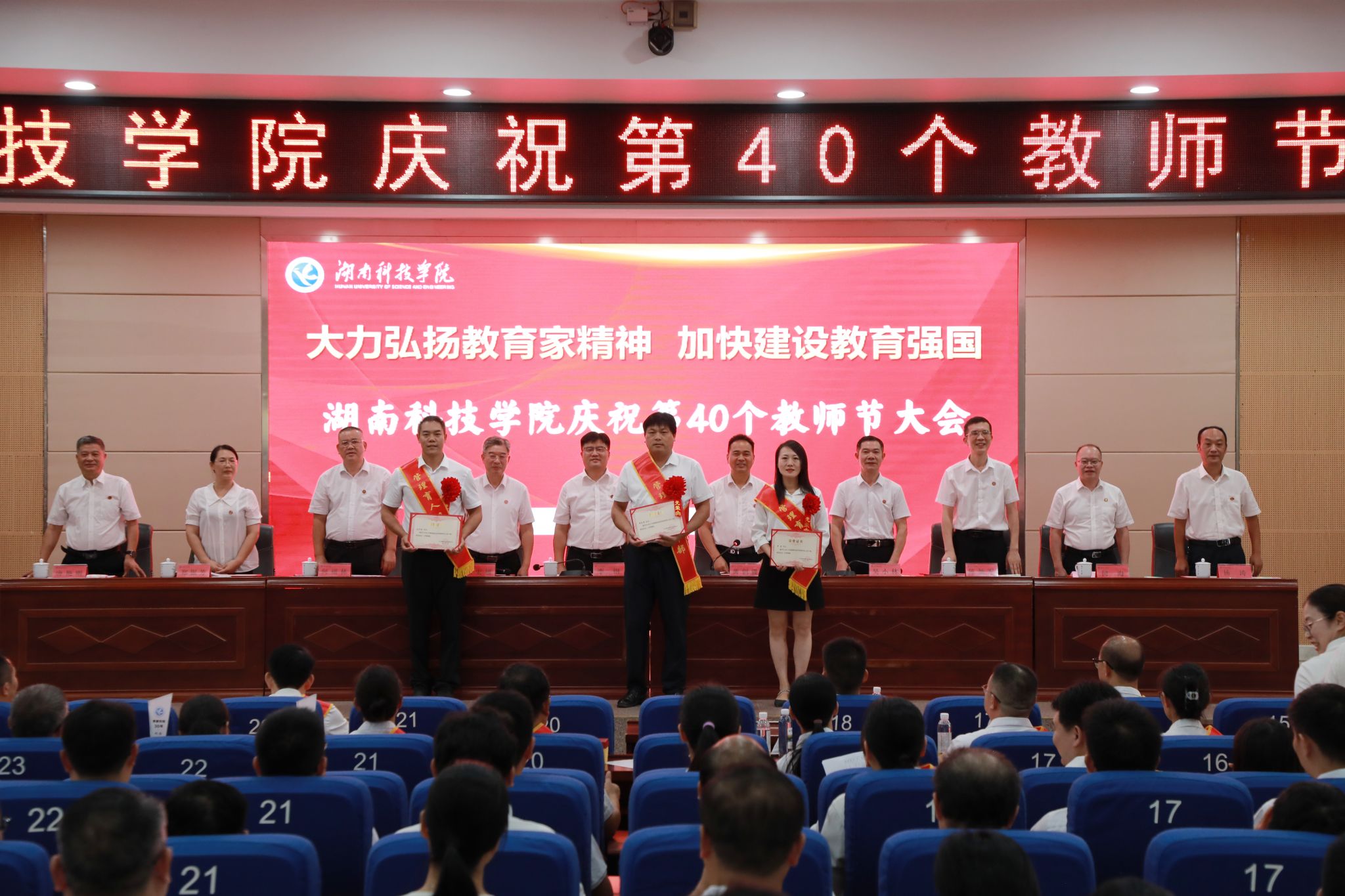 全体校领导、党委委员为受表彰教师颁奖。