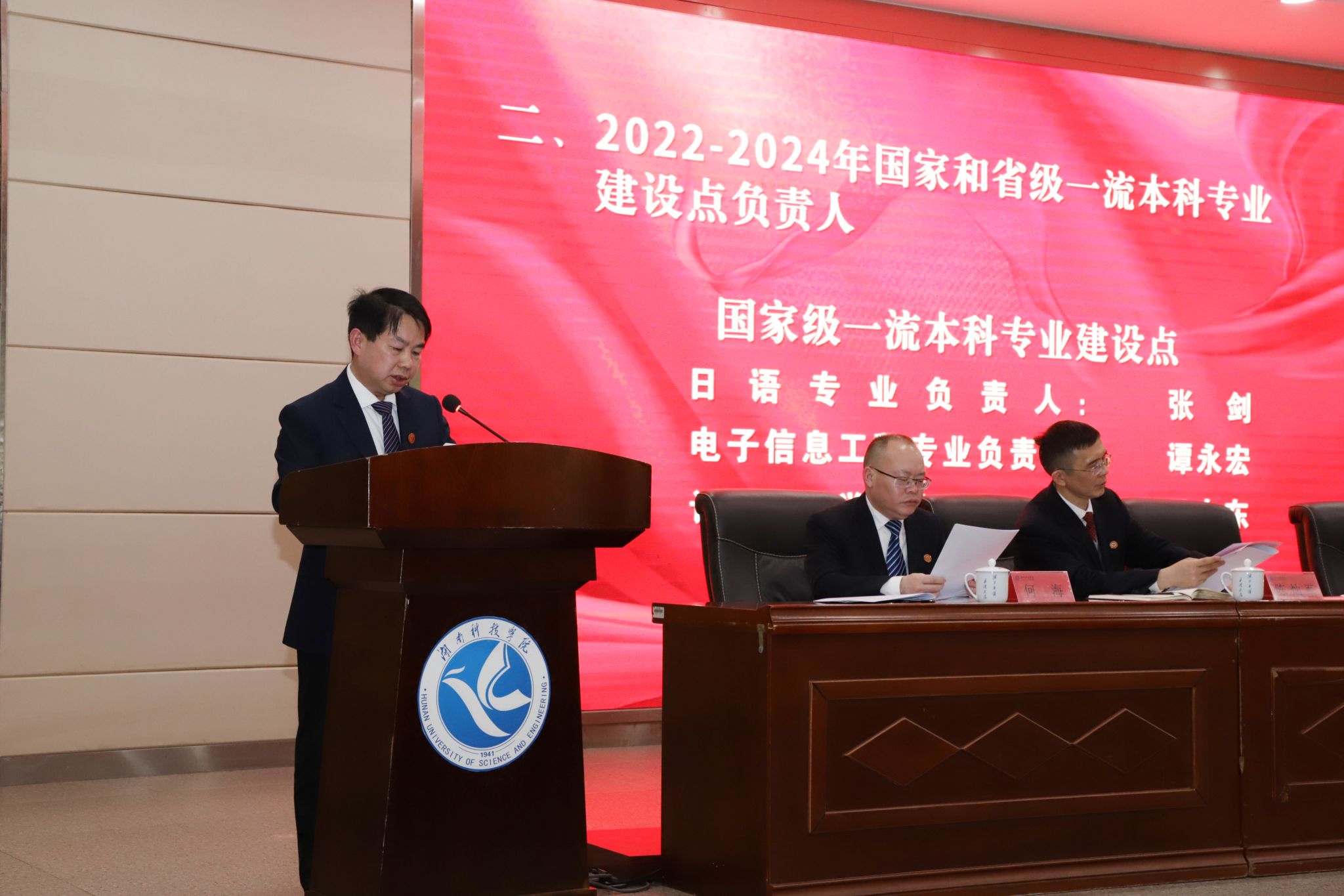 李常健宣读了受表彰教师名单:2022-2024年省级教学成果奖获奖教师团队、2022-2024年省级及以上“一流专业建设点”教师团队、2022-2024年省级及以上“一流课程”教师团队、2022-2024年省级及以上教学竞赛获奖教师、2022-2024年学生学科竞赛省级一等奖及以上奖励优秀指导教师。