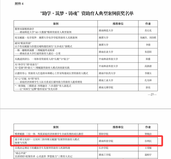 在“助学·筑梦·铸魂”资助育人典型案例征集活动中,全省共评选出30个优秀案例,我校谷利民老师的案例脱颖而出,获评优秀奖。该案例深度融合学校资助工作实践与思政教育,生动展现了我校在精准资助、励志教育、感恩培育等方面的创新举措与显著成效。