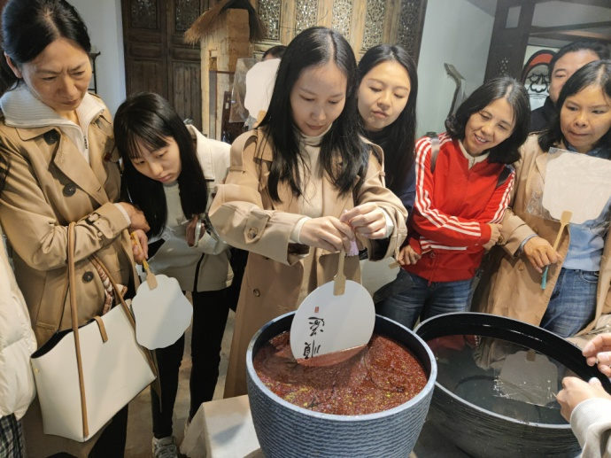 双方还共同开展了党建知识抢答、“重走长征路”、“一反常态”、“丢沙包”、漆扇制作等一系列主题活动,现场气氛热火朝天,其乐融融。