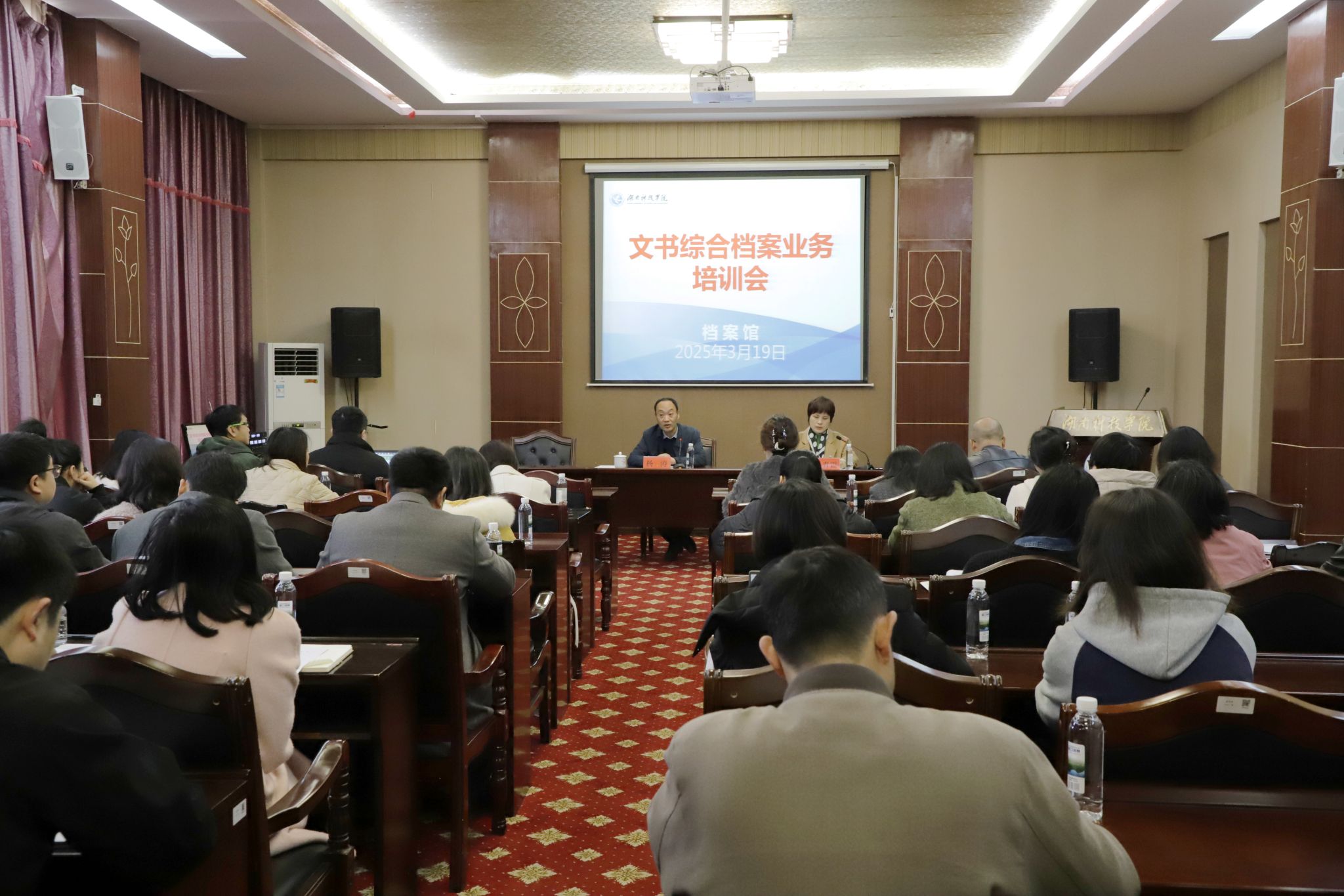 本网讯(记者 贾丽君 摄影 谢志豪)为进一步加强学校档案工作规范化管理,提升各部门档案员业务能力,推进档案数字化转型,3月19日,档案馆在行政楼803会议室举办了文书综合档案业务培训会。党委委员、组织部部长杨涛出席会议并讲话,全校机关、教辅部门综合办主任及相关人员参加培训。