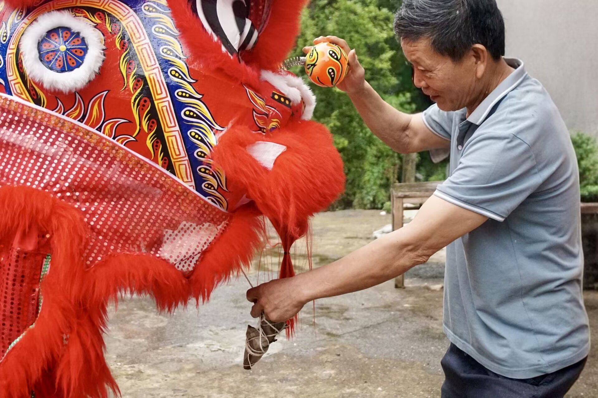 活动当天,粽叶、糯米、蜜枣整齐陈列,大学生们兴高采烈地折叶填米、缠线打结,青绿的粽叶在翻飞间化作棱角分明的粽子。抵达柳子街后,同学们为老人们打扫院落、整理家务,随后搀扶行动不便的老人到街头观看舞狮表演。随着锣鼓声起,五彩狮头踏鼓点腾跃翻滚,红绸飘舞如烈焰,金铃摇曳伴清音,惹得老人们纷纷拍手喝彩。82岁的李爷爷感慨道:“太热闹了,孩子们就像亲孙辈一样贴心!”志愿者们还将煮熟的粽子送到老人手中,细心叮嘱饮食注意事项。