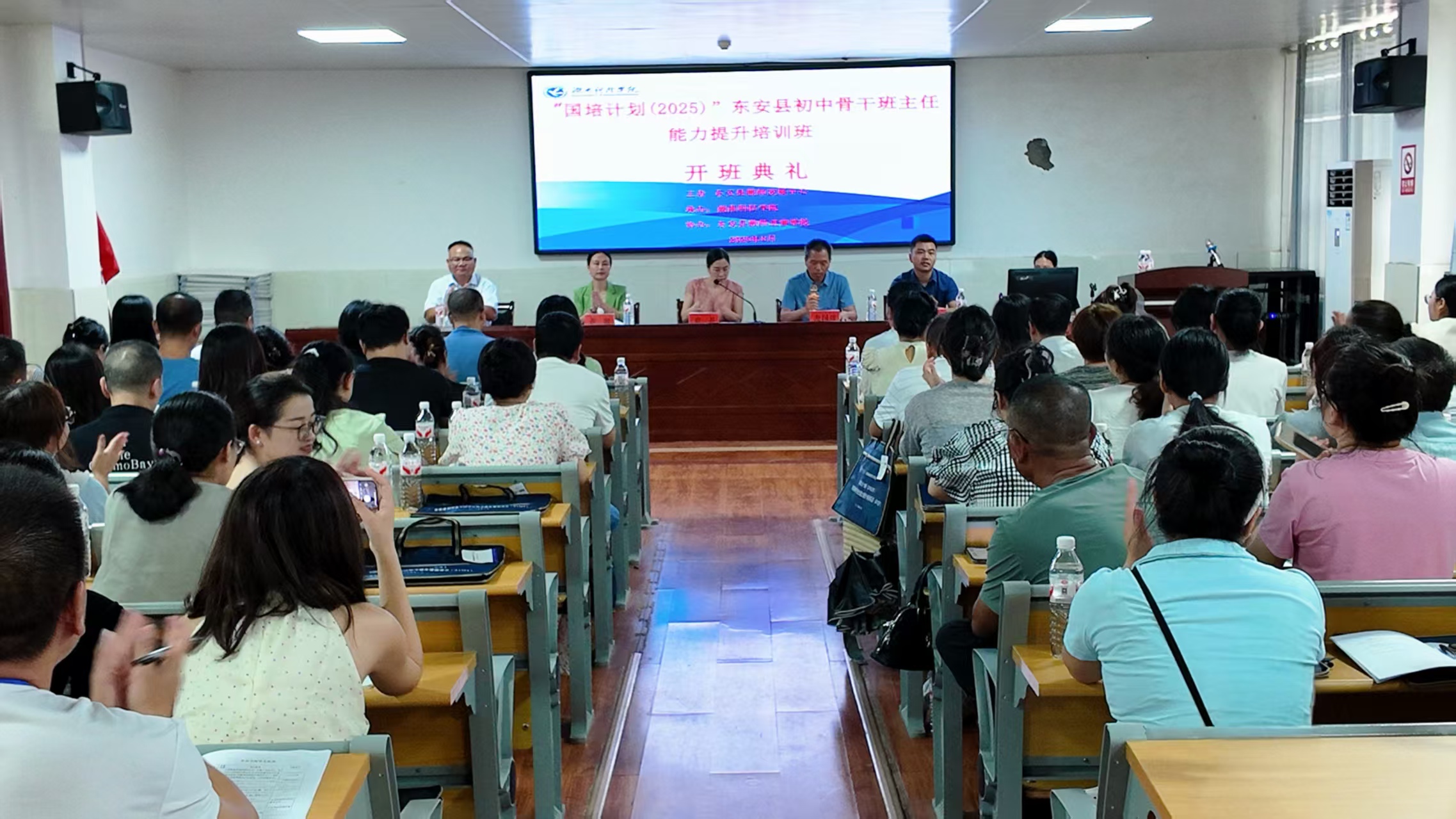 本网讯(通讯员 曹湖云 周霞云)8月20日上午,由我校继续教育学院承办的“国培计划(2025)”东安县初中骨干班主任能力提升培训班(第一阶段)在东安县教师进修学校开班。东安县教育局教师发展中心主任黄英,东安县教师进修学校、我校继续教育学院相关负责人及东安县76名初中骨干班主任参加开班典礼。