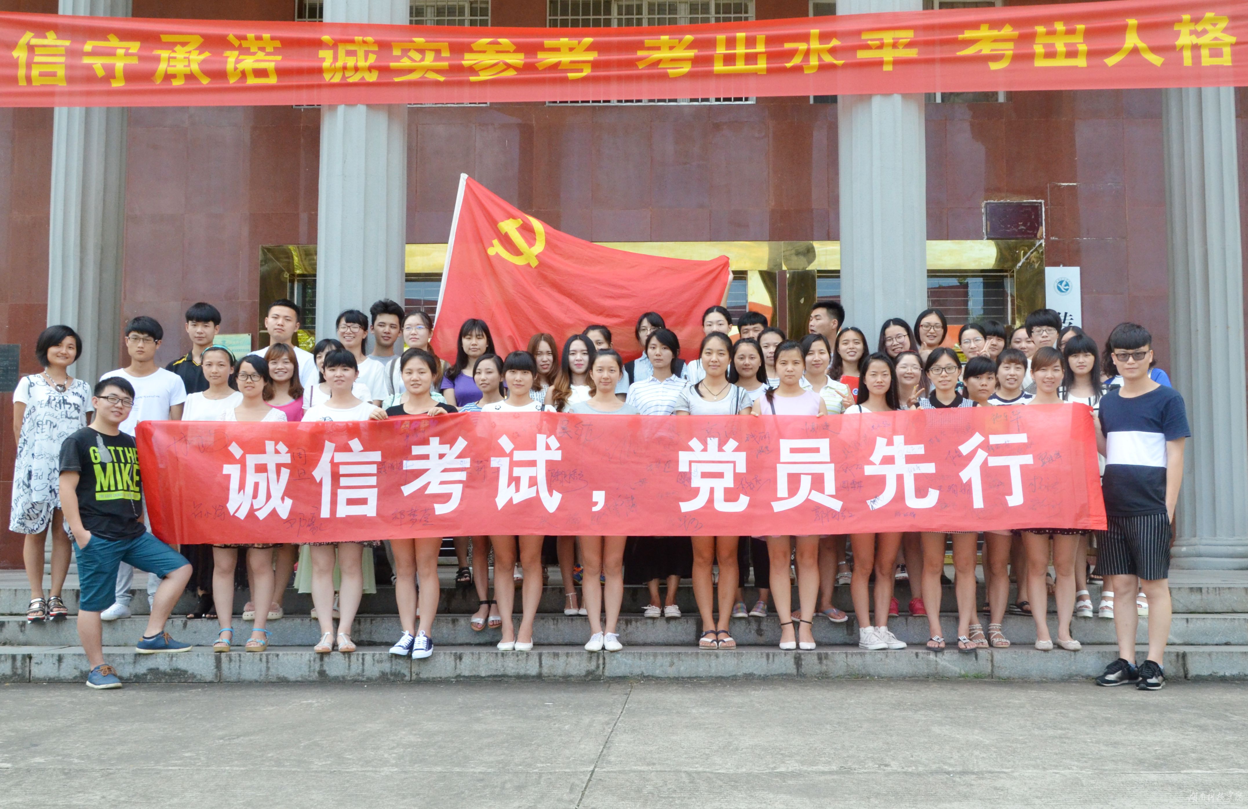 该院学生党支部书记肖可为学生党员授予学生党员证。学生党员相继在印有“诚信考试,党员先行”的横幅上庄重签下自己的名字,承诺遵守考试纪律,坚决不舞弊,并在考试期间佩戴党员证。