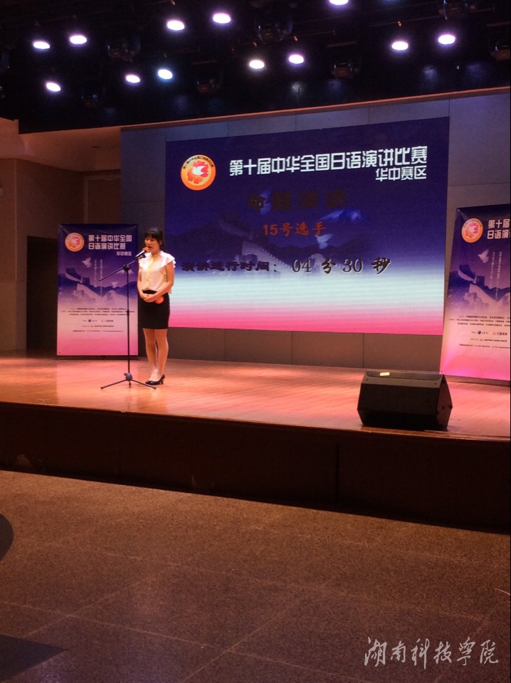 本网讯(记者 吴明珠)5月16日,从第十届中华全国日语演讲大赛华中赛区传来喜讯,外国语学院日语1102班谢苏以优异成绩排名第六,荣获三等奖。