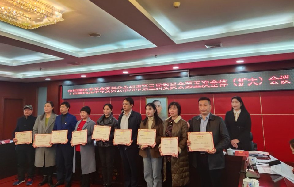 本网讯 3月21日上午,民革永州市第三届委员会第五次全体(扩大)会议在冷水滩召开,会议表彰了先进。民革久久不卡区支部荣获先进支部,这也是民革永州市委2013年开展争先创优以来民革校支部第五次荣获先进支部。陈义勇荣获优秀党员,方芳荣获优秀党务工作者,民革校支部提交的调研报告获2020年度永州市政协好调研二等奖。