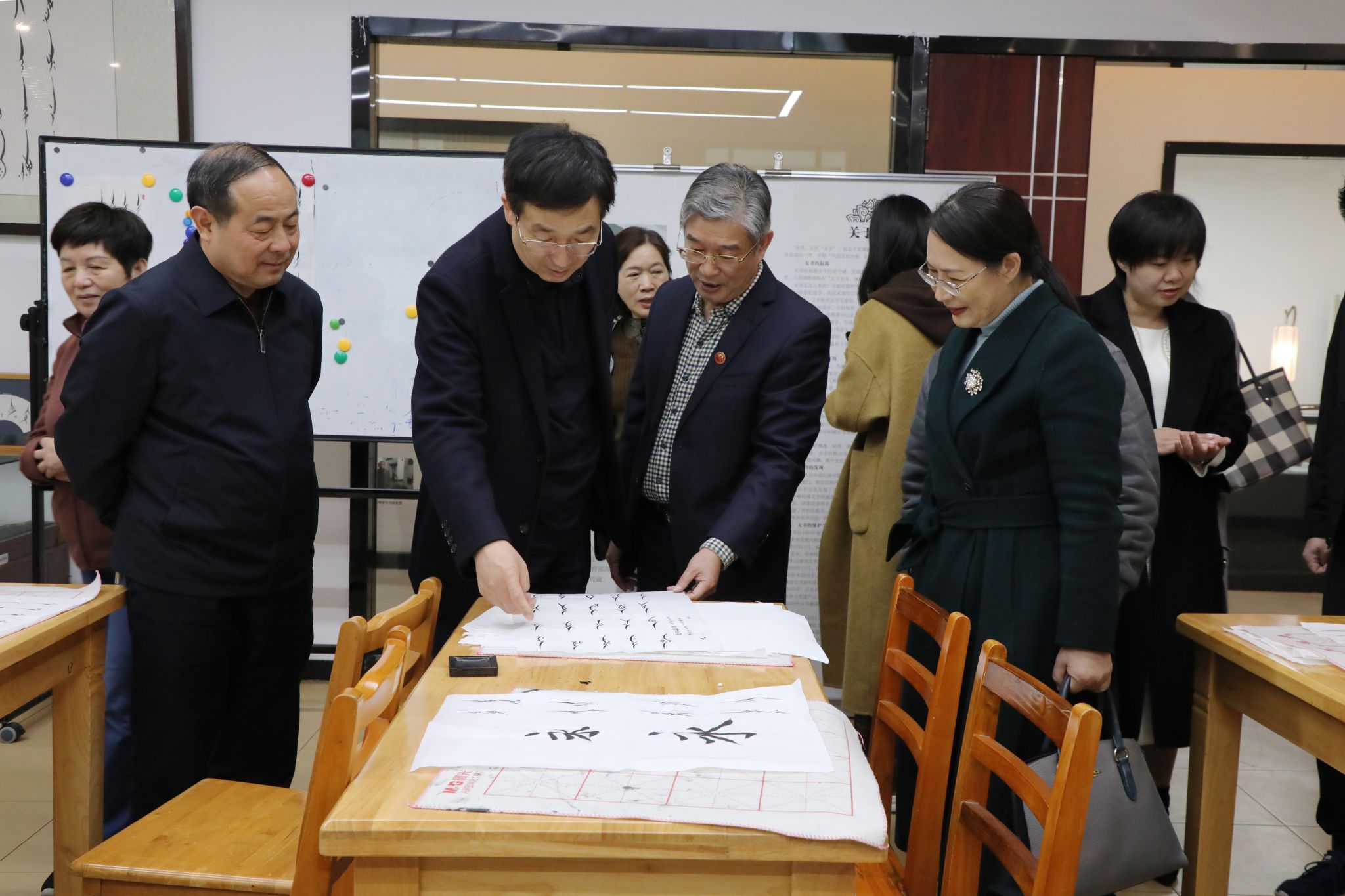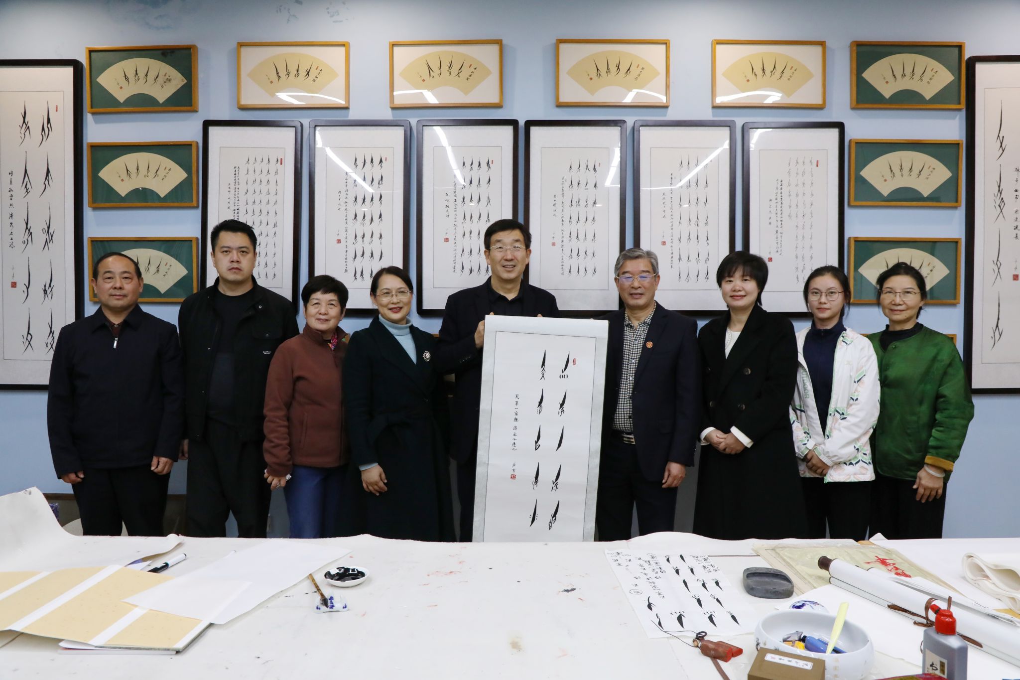 程相朝充分肯定了我校的创新创业工作。他指出,学校立足地方、根植地方、服务地方成效显著。在交流过程中,程相朝还与我校九疑派古琴第四代传人欧阳平彪等就项目研究、非遗传承、服务社会等方面进行亲切交流,并现场体验女书书法。