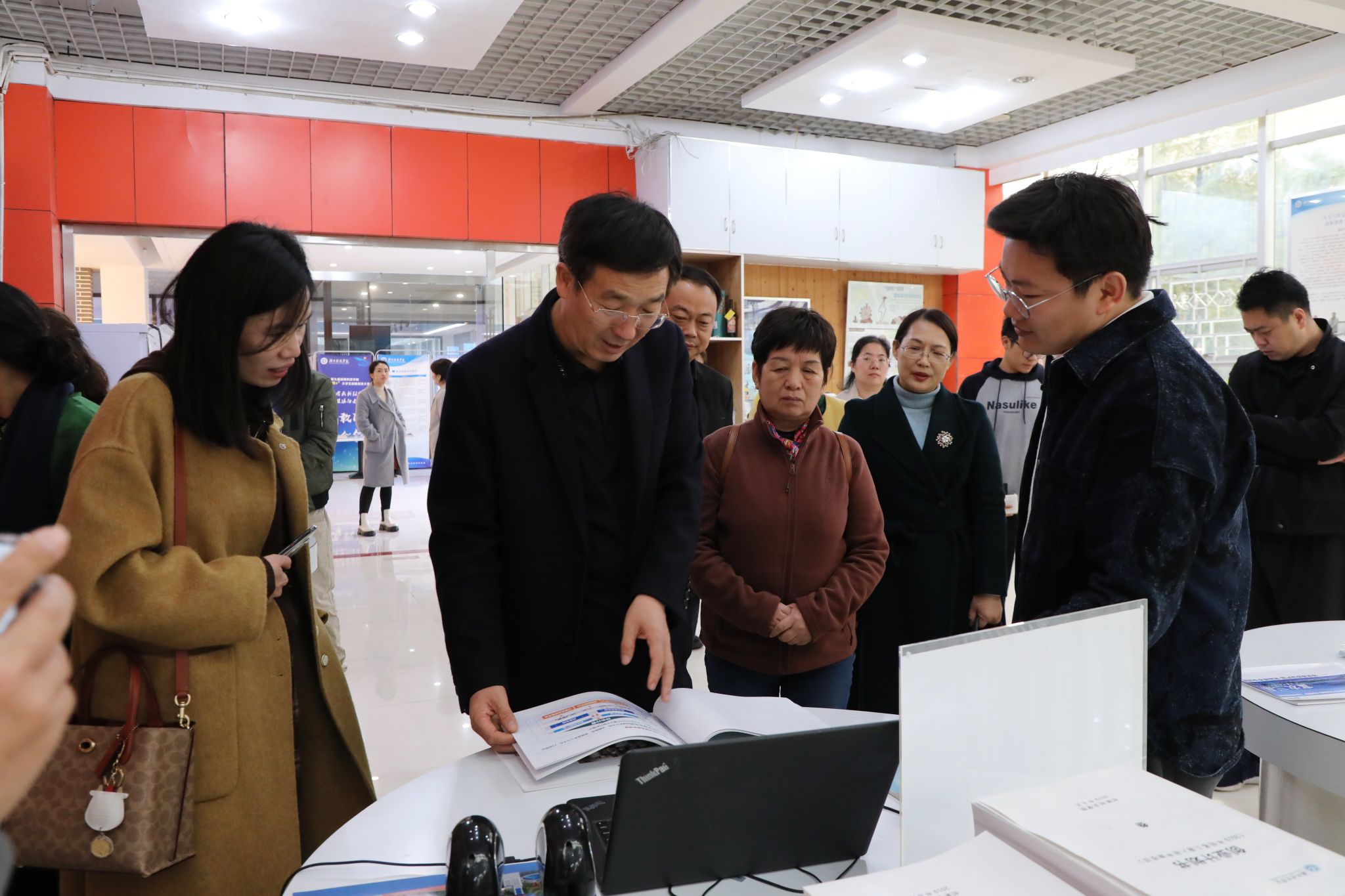 程相朝一行实地考察我校创新创业学院(国家级众创空间)、航空模拟舱、工程实训中心等地。宋宏福向程相朝一行介绍了学校九疑派古琴、女书传承基地建设情况;郑银芳介绍了学校的历史沿革、学科发展、人才培养和创新创业教育成效等方面的情况。